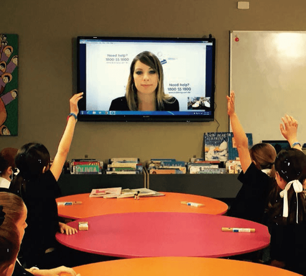 This allows tertiary qualified counsellors to run sessions with primary school classes via videolink on topics such as peer pressure and cyber bullying.